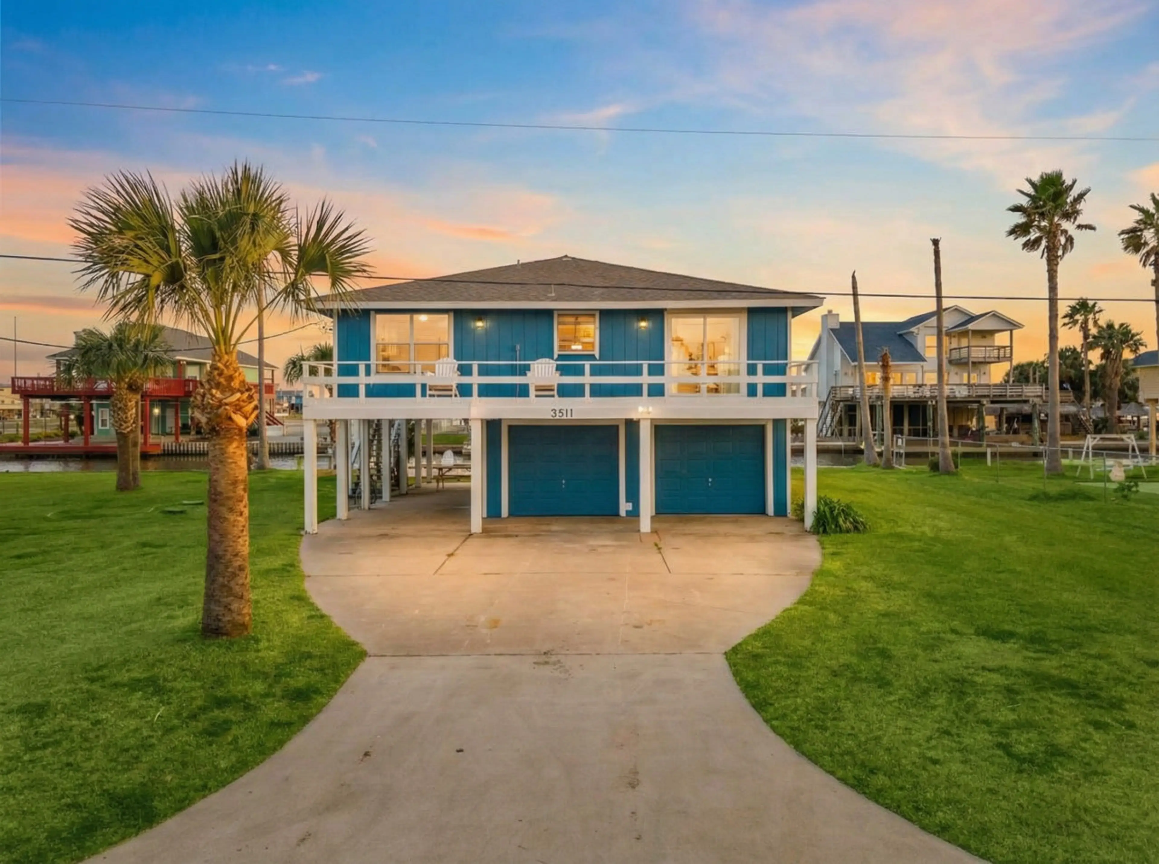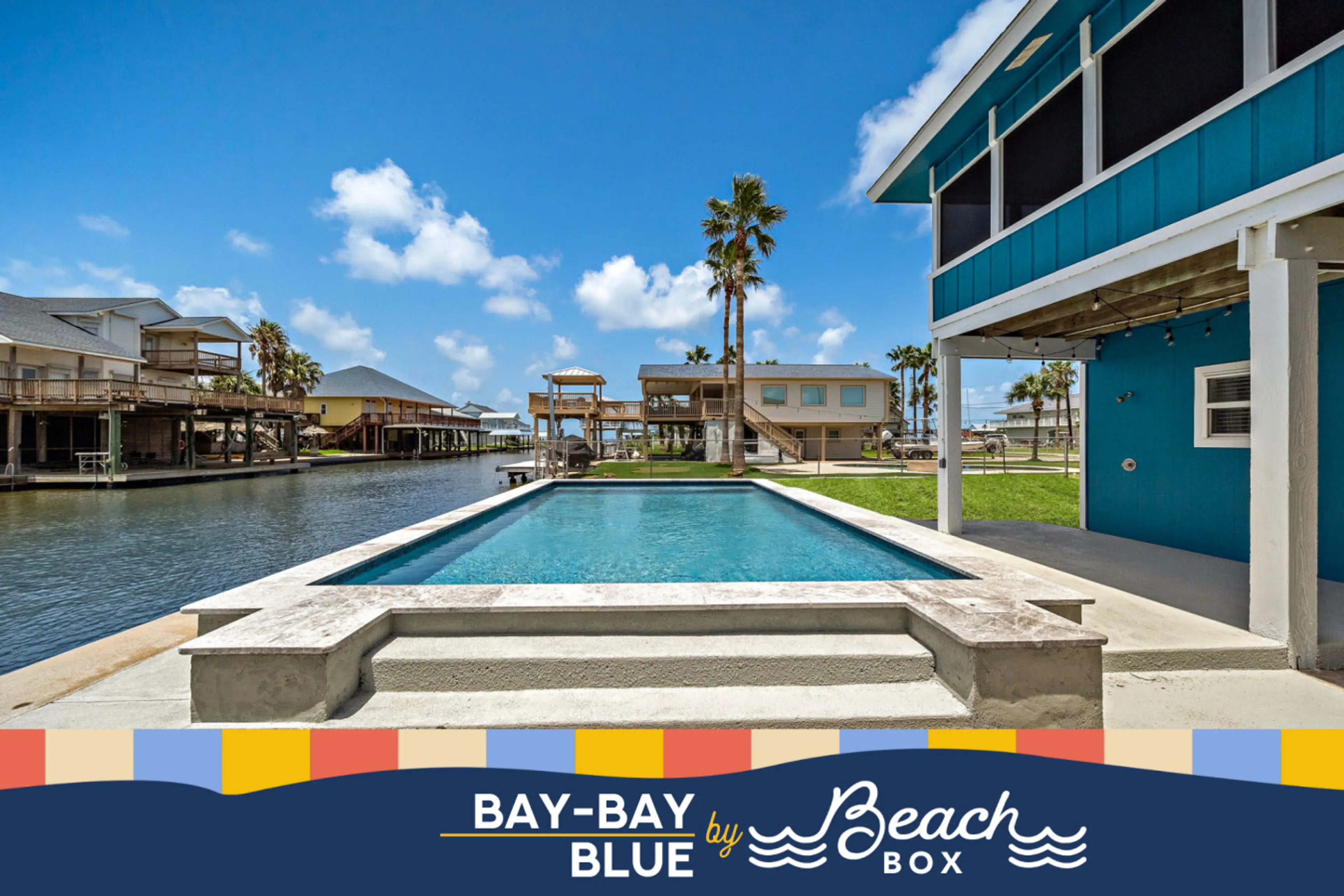 Welcome to Bay Bay Blue, a peaceful, waterfront retreat on Galveston’s west end. Sitting on a canal at the mouth of the bay, this home has a stunning waterfront pool, awesome decks, a huge fire pit, and plenty of space for your whole crew. The game room downstairs is equipped for late night fun with...