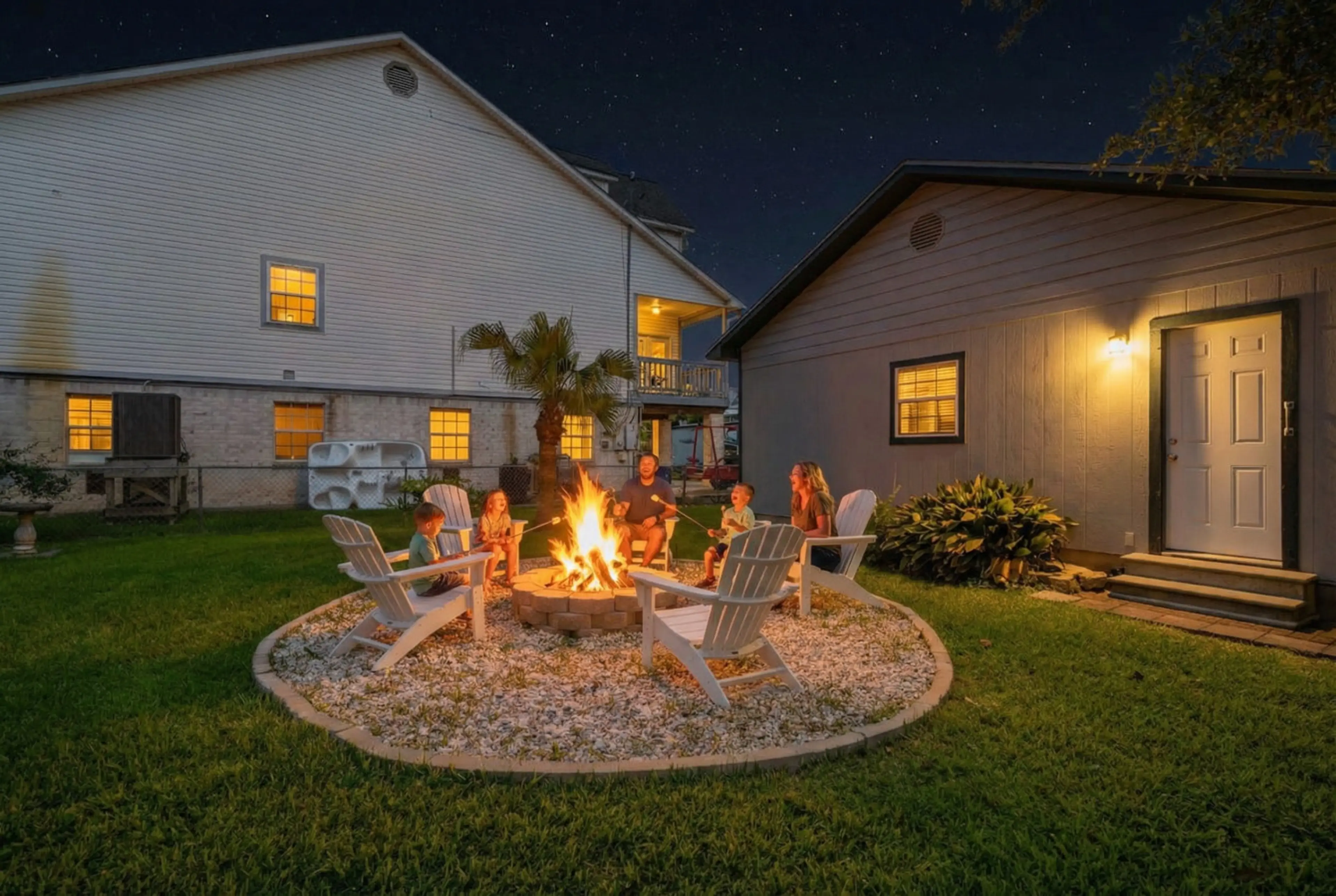 Casa Clara welcomes you! This stylish home raises the bar on outdoor spaces. Relax by the firepit on 2 spacious patios, just 3 minutes from the Kemah Boardwalk's shops, restaurants, and thrilling rides. Inside, unwind in the living room with a wet bar & smart TV - perfect for movie nights or game ni...