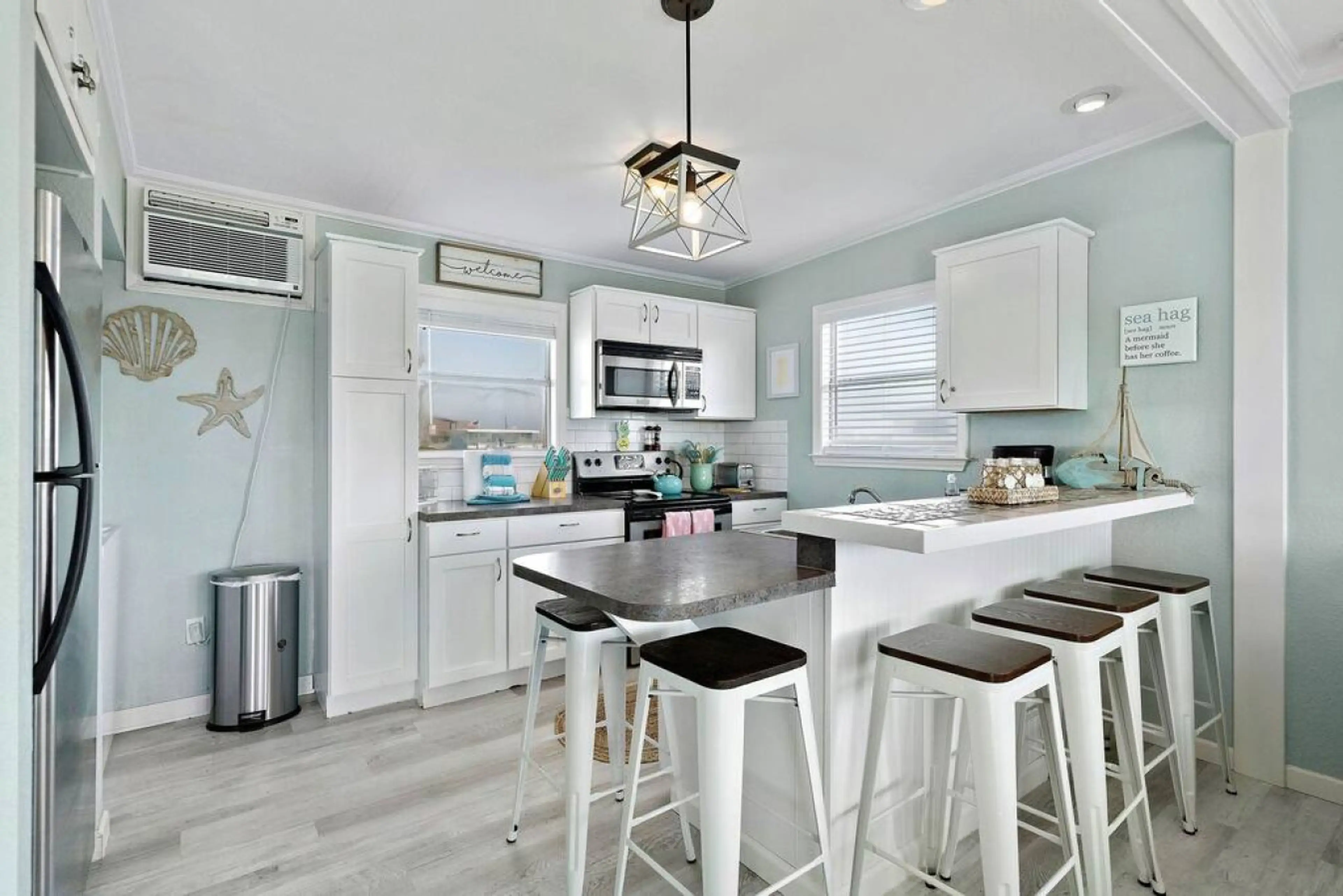 Serenely set in the Sea Isle neighborhood, this cheerful, coral-pink bungalow was built for the beach. With multiple outdoor spaces— including a rooftop deck and a huge fenced-in yard— you’ll have plenty of space to soak up the Texas Gulf Coast sunshine and feel the ocean breezes. There’s also an ou...