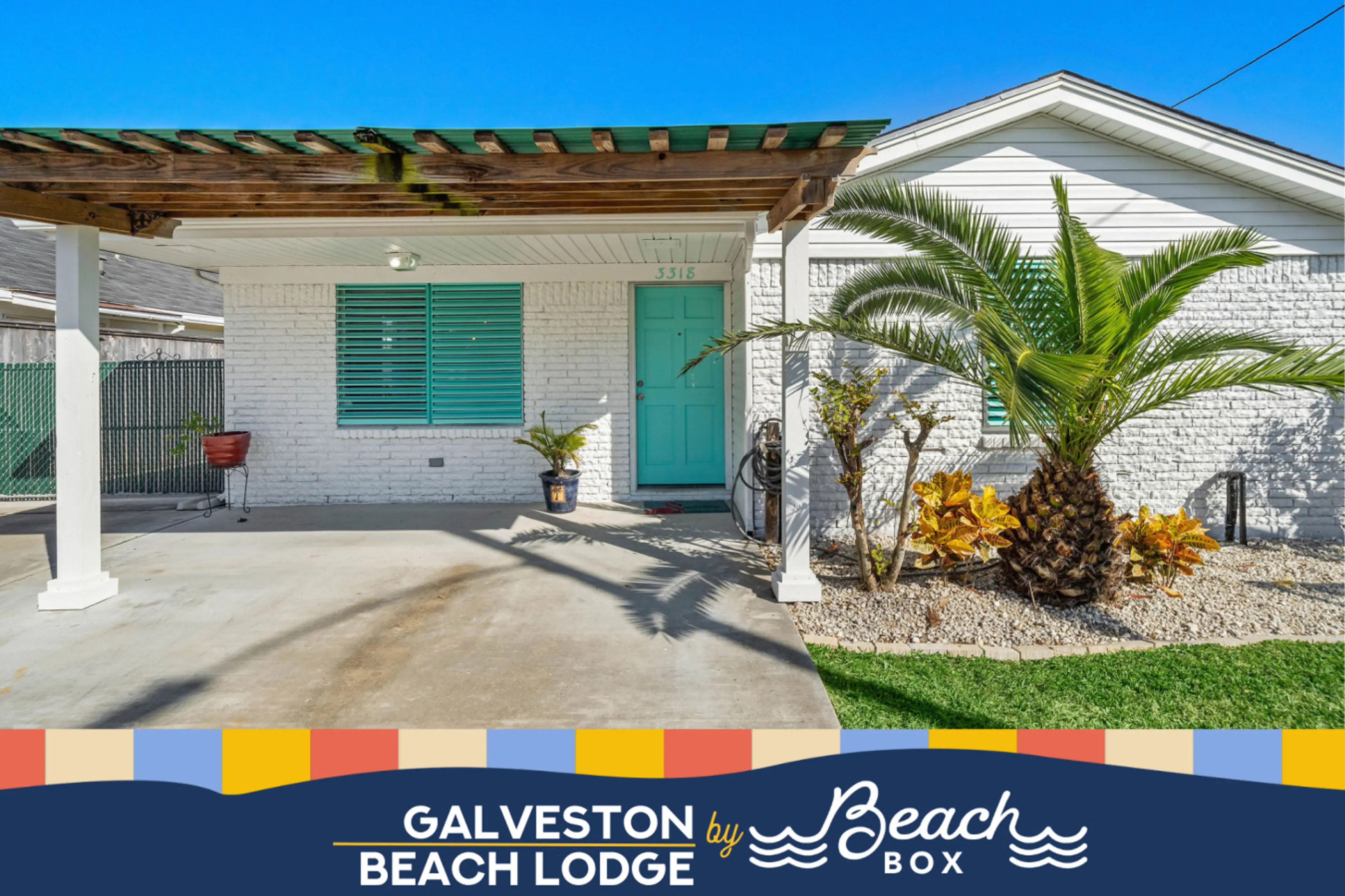 Let the good times roll at Galveston Beach Lodge! This mini-compound has space for 16 people spread out over two homes— the main house in front and the guest suite in the back. This bright and vibrant coastal home is seconds away from the dining and excitement of the Seawall while providing plenty o...