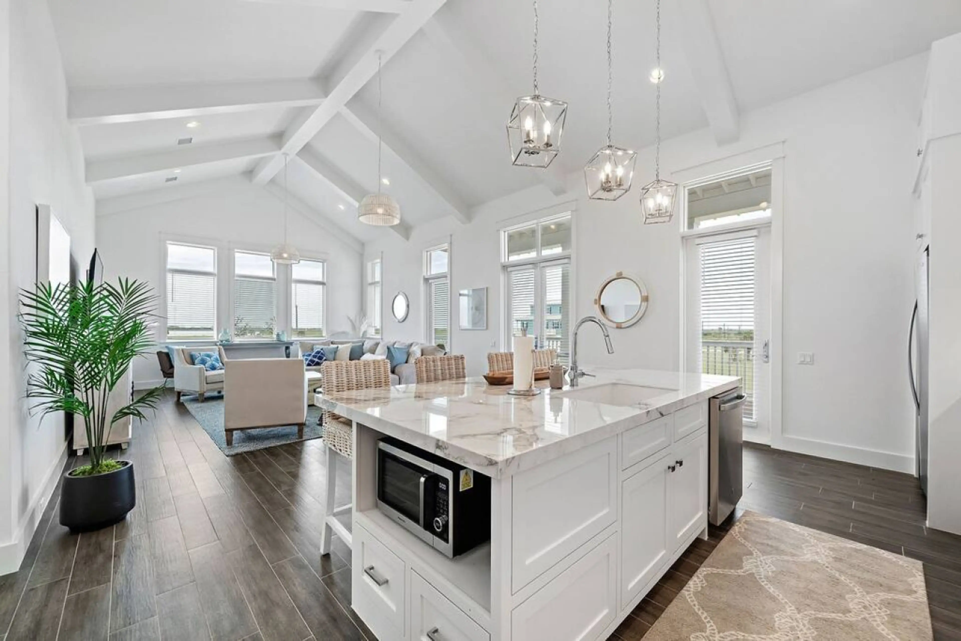 Experience the sweet vacation life at Sweetwater Sunset! Nestled between a vast 450+ acre nature preserve and the serene waters of West Galveston Bay, the beauty of the Texas Gulf Coast is just steps from your front porch. With four beautifully appointed bedrooms, each with its own en suite bathroom...