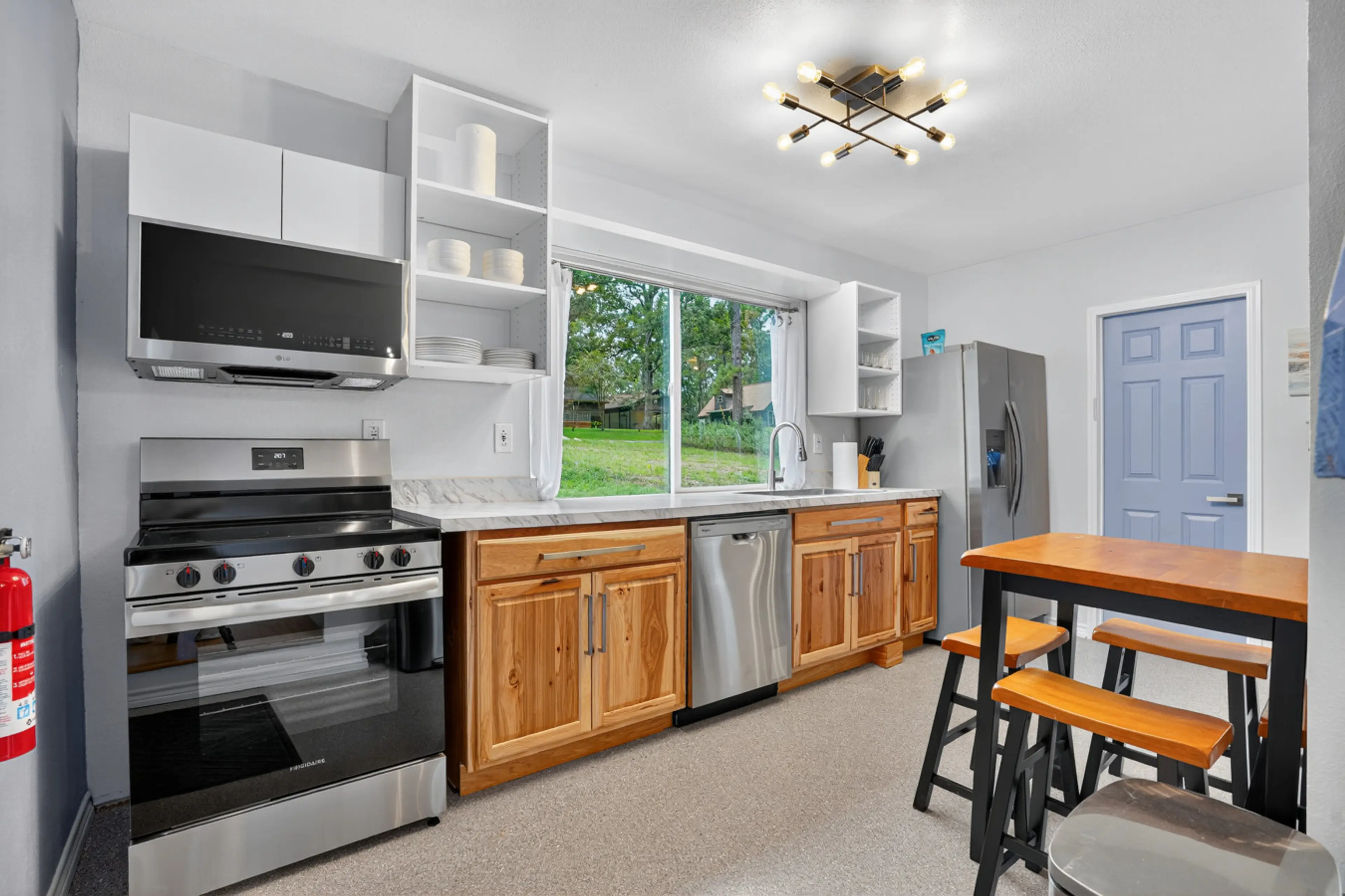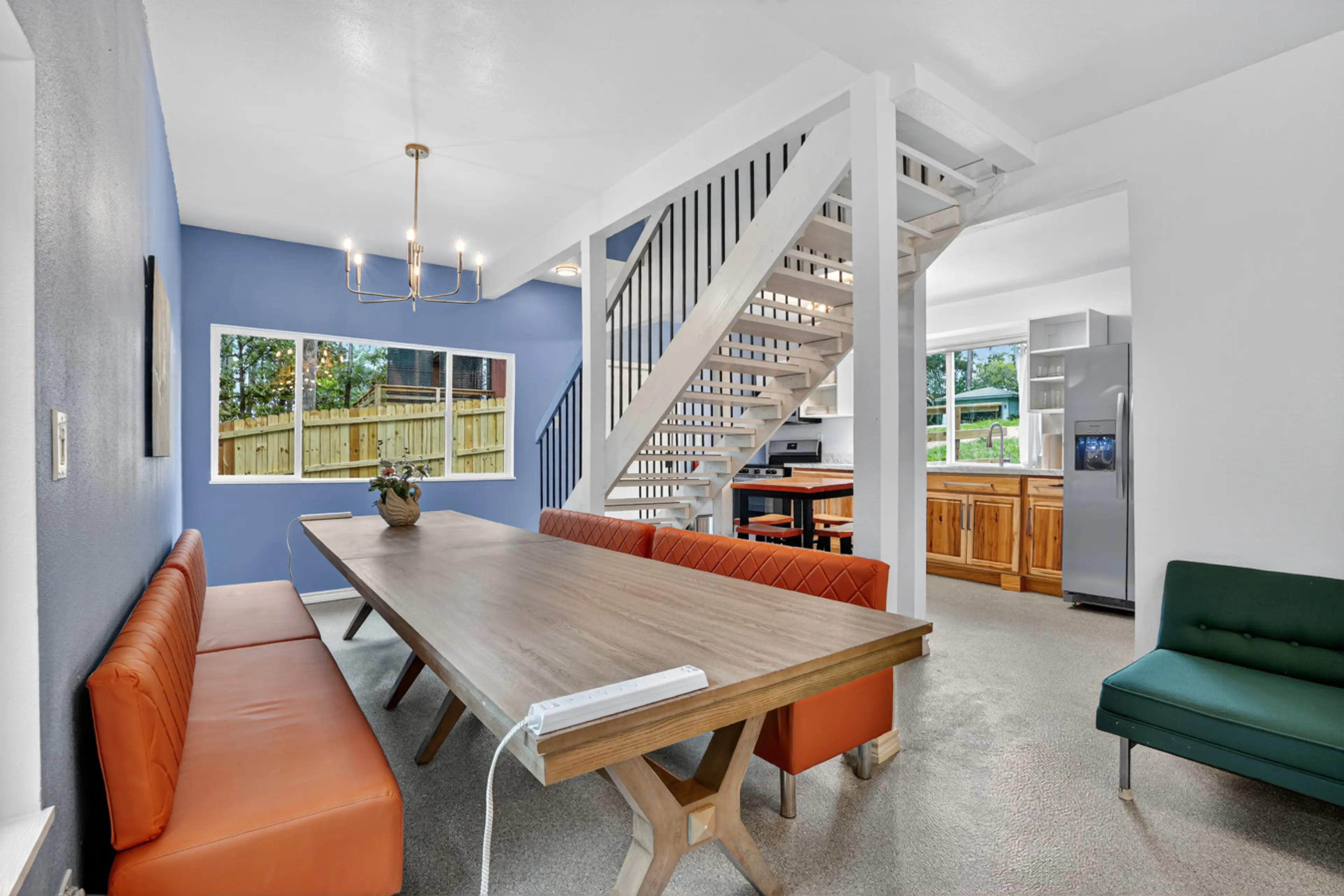 Escape to a modern retreat set on an acre of towering pines in Point Blank, with Lake Livingston cove views from the 800-square-foot rooftop deck. This comfortable home features 5 bedrooms, 4 bathrooms, and a 13-foot-long dining table perfect for large groups. Other guest-favorite highlights include...