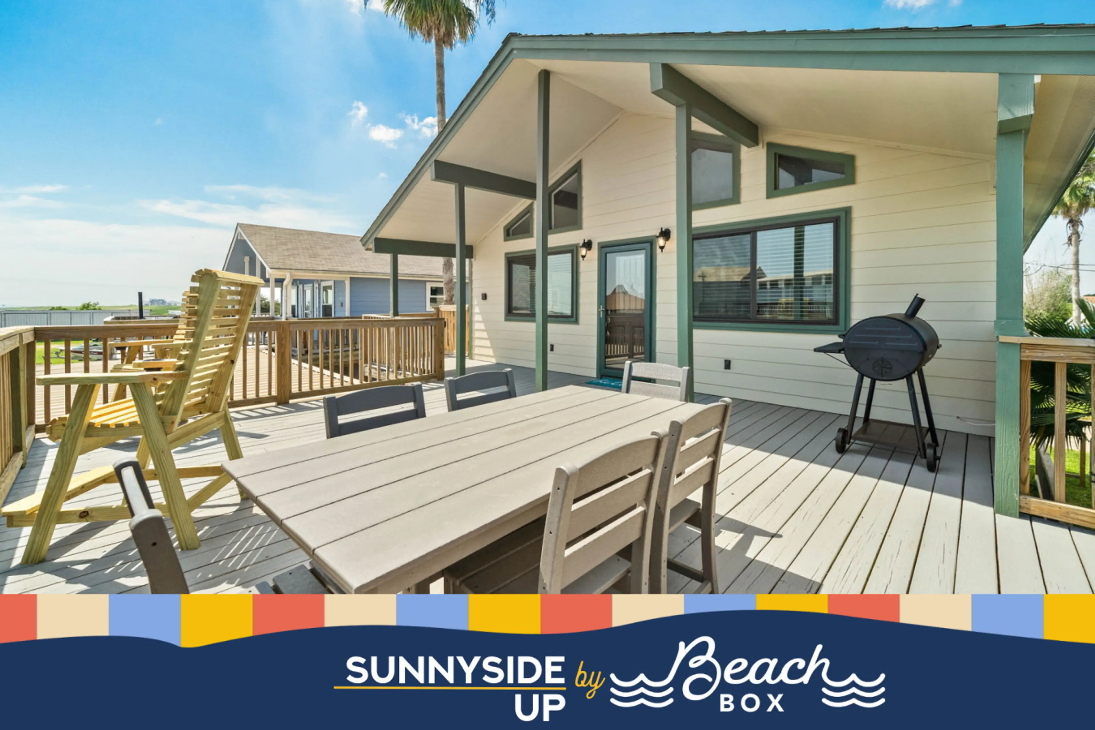 Unwind on the beach and enjoy endless entertainment at Sunnyside Up! This spacious 4-bedroom, 2-bathroom vacation rental in Freeport, Texas boasts an open-concept living area, a private game room barn, and stunning canal views. You’ll find ping pong, a pool table, foosball, arcade games and a 65 inc...